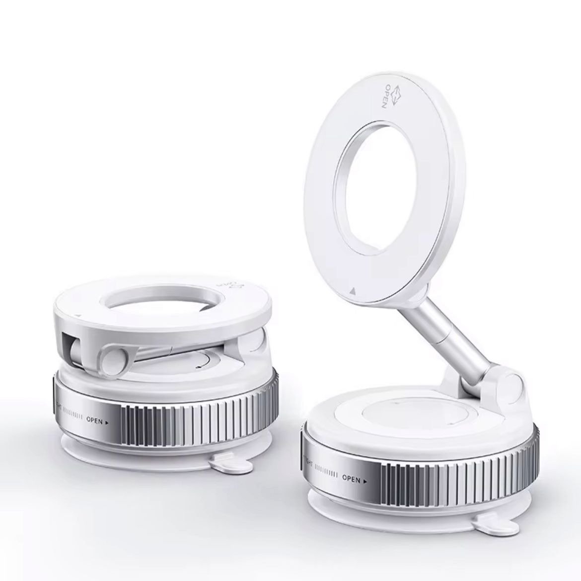 حامل جوال مغناطيسي أنيق بلون أبيض ، يتميز بدوران 360° لتثبيت الجوال بالزاوية المناسبة لك. مصنوع من سبيكة الزنك + ABS لمتانة عالية ومغناطيس قوي يضمن ثبات الهاتف أثناء القيادة أو الاستخدام المكتبي. تصميم مدمج، قاعدة شفط محكمة، يناسب جميع أنواع الهواتف الذكية.
